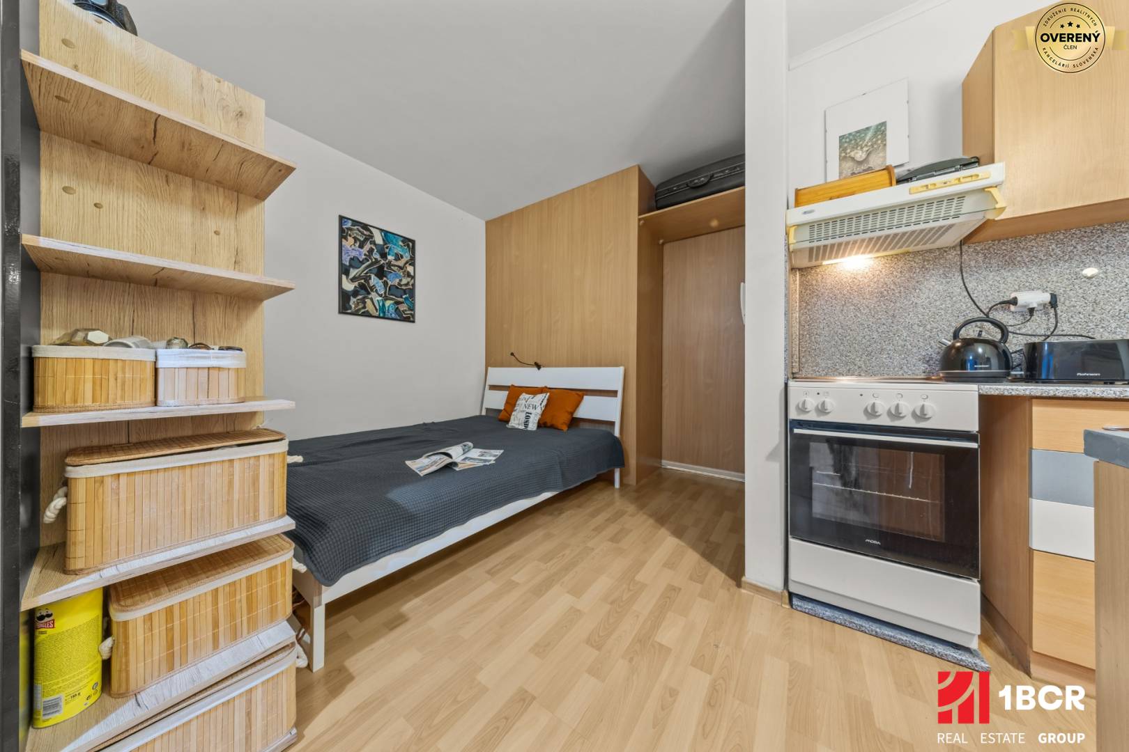 V zastúpení majiteľa vám ponúkame na predaj kompletne vybavený 1-izbový byt v jednej z najvyhľadávanejších lokalít Bratislavy – v projekte Koloseo na Tomášikovej ulici. Vzhľadom na lokalitu a nízke náklady ide o ideálnu nehnuteľnosť na okamžitý prenájom. Byt sa predáva kompletne zariadený a pripravený na okamžité bývanie. Pri vstupe vás privíta chodba s praktickou šatníkovou skriňou, odkiaľ sa prechádza do kúpeľne spojenej s toaletou, vybavenou vaňou a práčkou. Hlavný obytný priestor je vďaka šikovnej policovej zostave logicky rozdelený na dennú časť so sedacou súpravou a nočnú časť s posteľou. Kuchynský kút je plne funkčný, vybavený linkou a jedálenským stolom. Príjemnú klímu v byte zabezpečuje klimatizácia a z izby sa plynule vychádza na priestranný balkón. Momentálne sú tam nájomníci, čiže máte okamžitý príjem z nájmu.