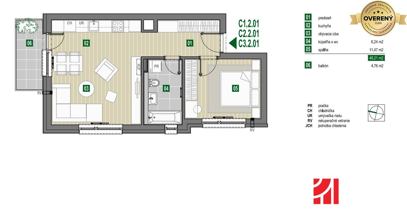 * Balkón: 4,76 m²
