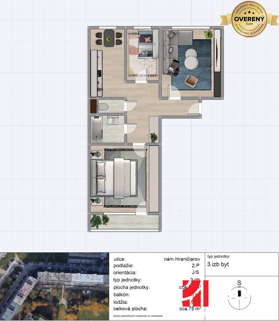 * celková plocha plocha bytu s pivnicou a lodžiou: cca. 75 m²