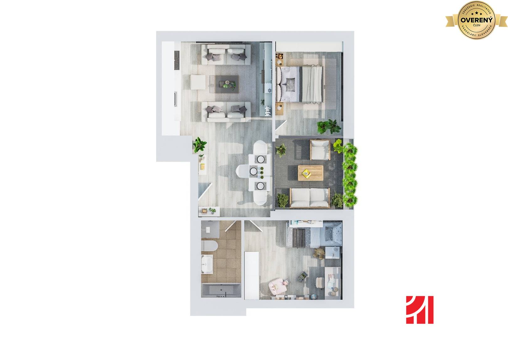 © Text a vizualizácie sú autorským dielom a majetkom 1.BCR GROUP. Všetky prezentované údaje zverejnené v tomto inzeráte majú informatívny charakter a žiadnej strane nevzniká nárok na uzatvorenie zmluvy. Spoločnosť 1.BCR s.r.o. nenesie za ich správnosť, úplnosť a presnosť žiadnu zodpovednosť. Uvedené vizualizácie majú informatívny charakter.