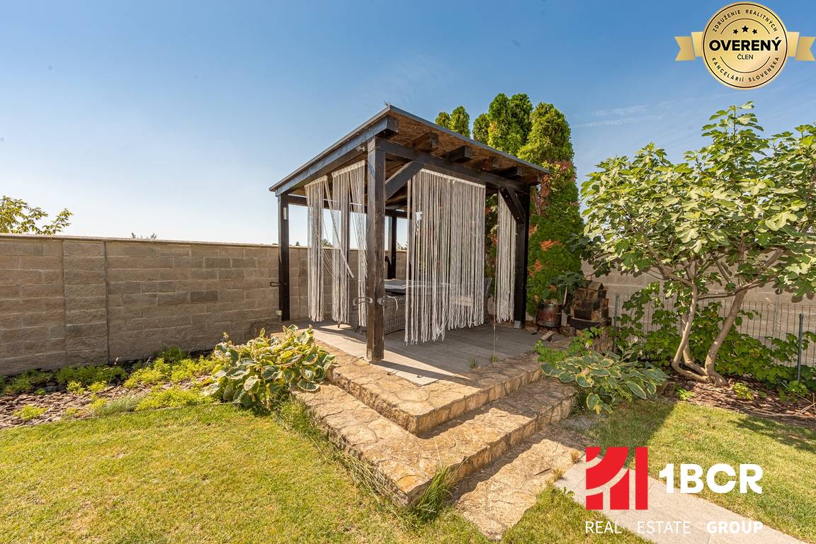 Na pozemku sa nachádza udržiavaná záhrada s automatickým zavlažovaním, bazén s prekrytím, altánok s jedálenským sedením a relaxačná časť s hojdacou sieťou.