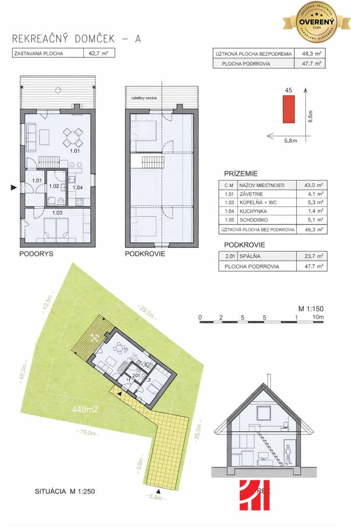 * Zastavaná plocha: 48,3m²