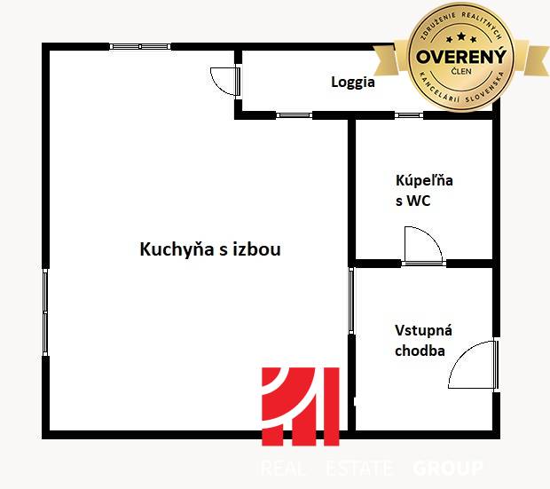 - Priestranná izba spojená s kuchyňou a barovým pultom, so vstupom na loggiu