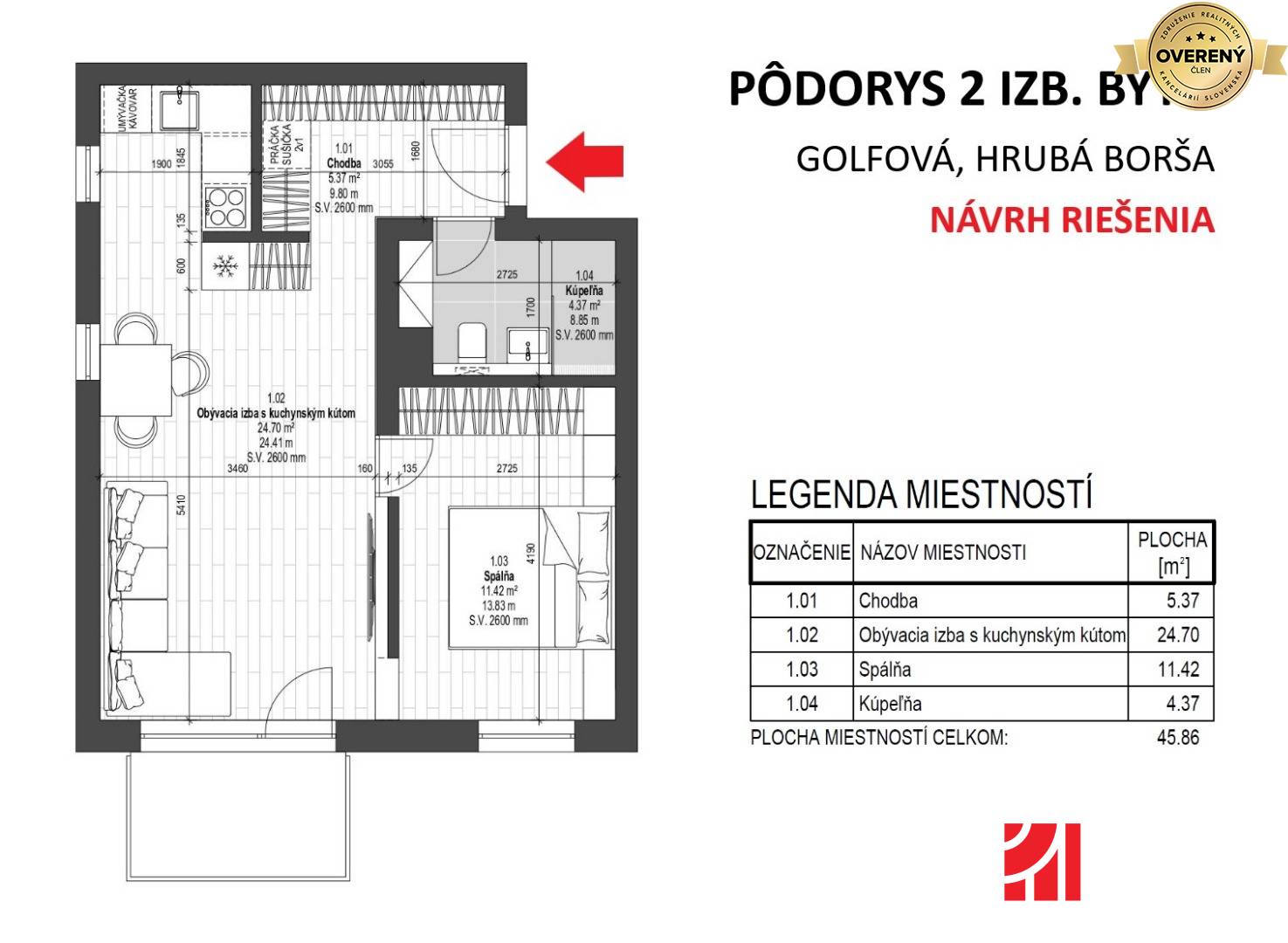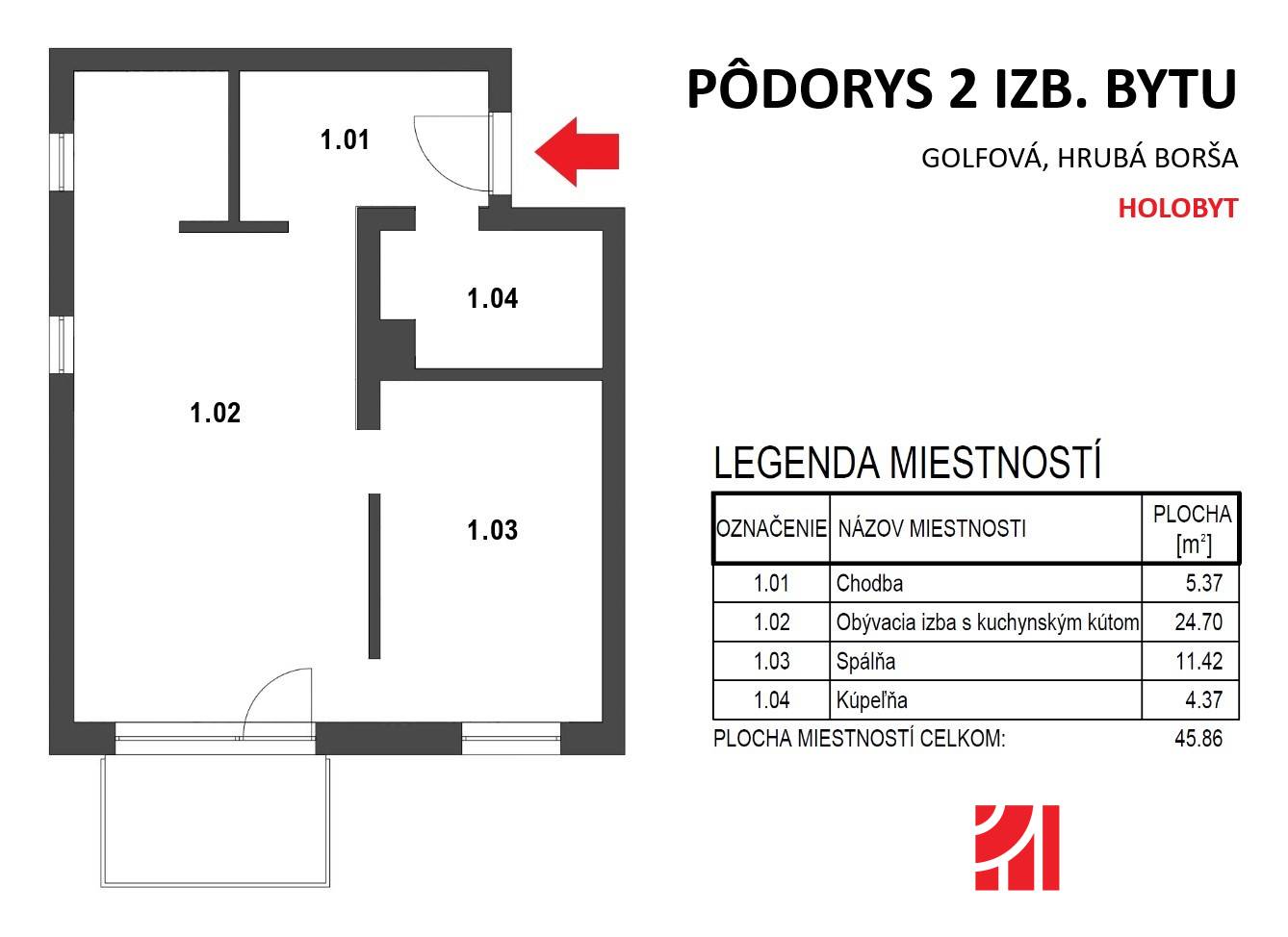 * Výmera bytu: 47.05 m2
