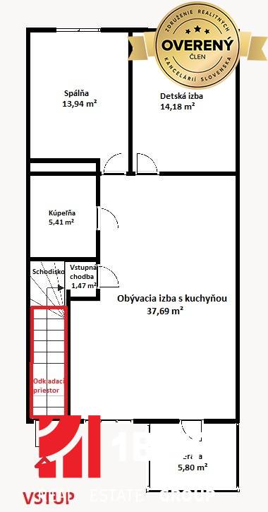 * Odkladací priestor nad schodiskom: 3 m²