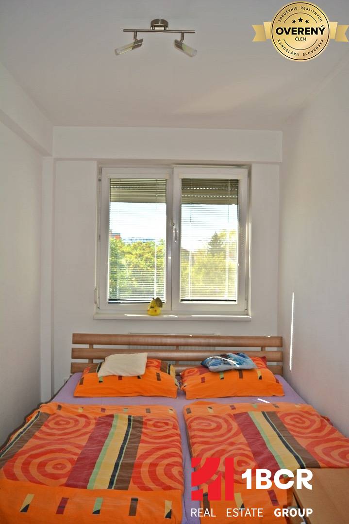 Byt sa nachádza na 3. poschodí zo 6, s výťahom, o rozlohe 60 m2 vrátane loggie. Je výborne dispozične riešený, pretože po vstupe do bytu sa dostaneme do chodby, z ktorej sa vchádza do všetkých miestností v byte. Obývacia izba je spojená s kuchyňou, ktorá je vybavená kuchynskou linkou na mieru so zabudovanými spotrebičmi (umývačka riadu, elektrická rúra, elektrická varná doska, mikrovlnná rúra) a jedálenským kútom, v detskej izbe a na chodbe sa nachádza vstavaná skriňa na mieru, kúpeľňa je vybavená vaňou a vďaka oknu má dostatok denného svetla, toaleta je samostatná. Vstup na zasklenú loggiu je možný z obývacej izby. Ešte pri výstavbe bol byt dispozične zmenený na 3 – izbový, vďaka čomu pribudla menšia spálňa.