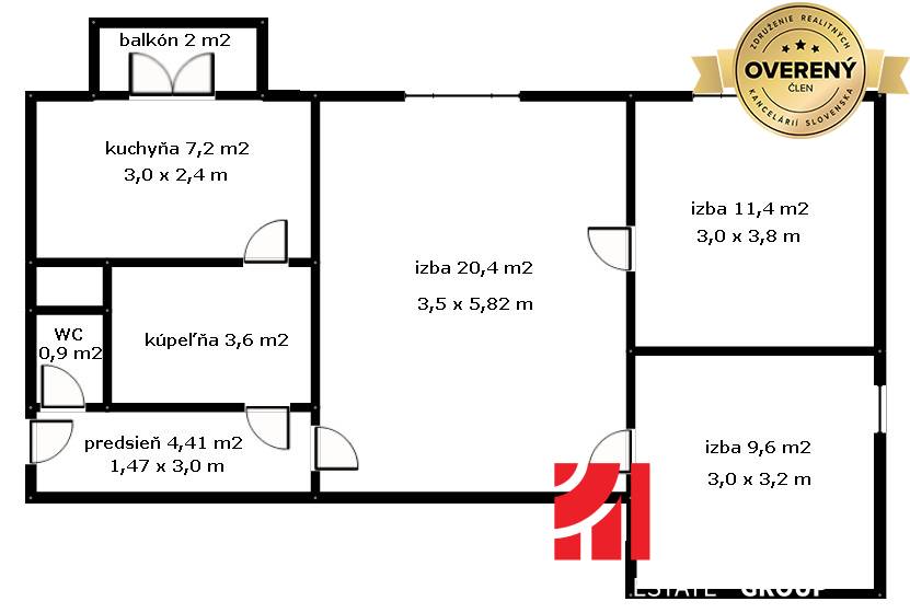 * celková rozloha bytu: 59 m2 + balkón