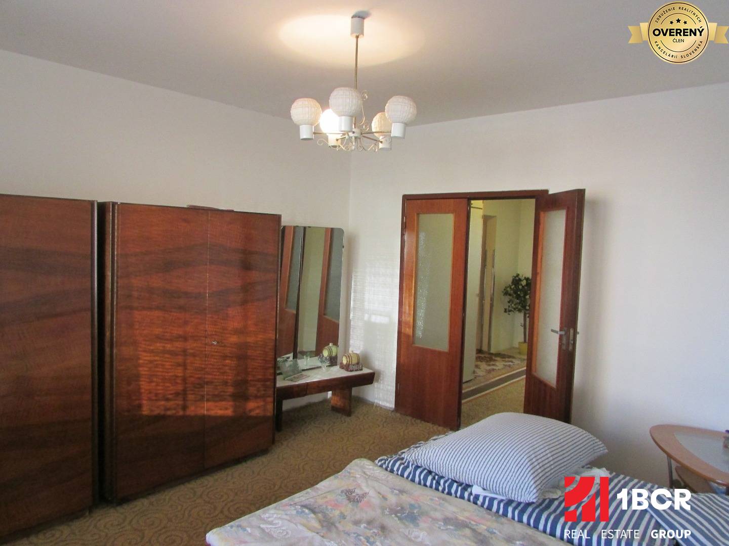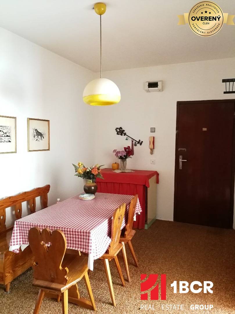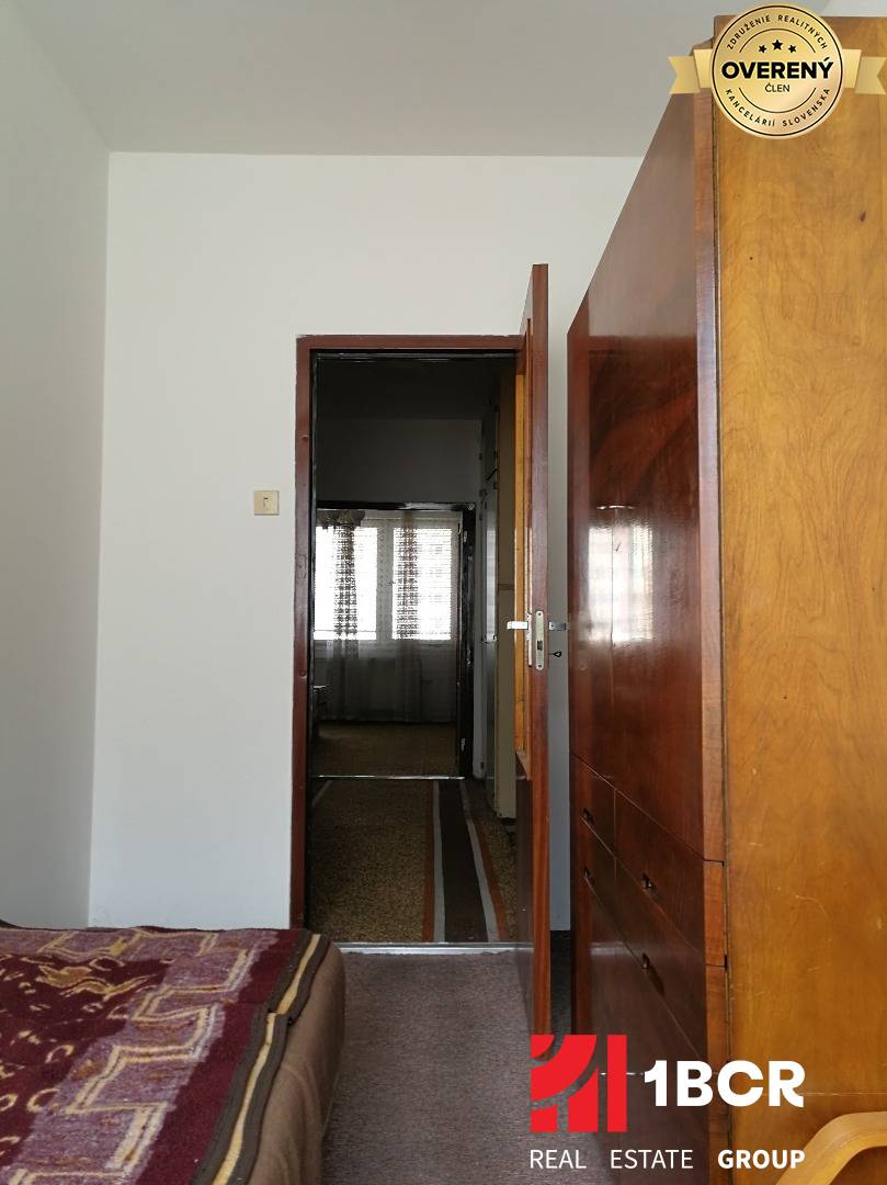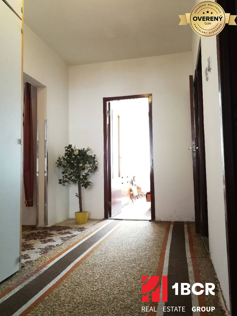 Byt je situovaný na 1. poschodí z 12. poschodí bytového domu ( približne v 6 metrovej výške ), ktorý bol kompletne zateplený, bola vymenená vchodová brána so schránkami a nové výťahy. Orientovaný je na dve slnečné strany a to východ - západ. Výmera bytu je 76 m2 + loggia 4 m2 ( musí sa dorobiť ) + pivničná kobka 2 m2. Nachádza sa vo veľmi zachovalom pôvodnom stave s drevenými oknami, murovaným jadrom, zachovalým nábytkom, kuchynskou linkou s murovanou špajzou. Čo sa týka loggie, tak bude potrebné ju celú prerobiť a z veľkej izby prebúrať otvor, aby vznikol vstup.