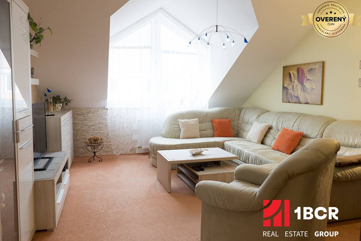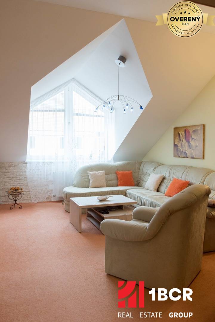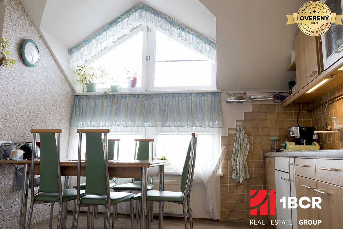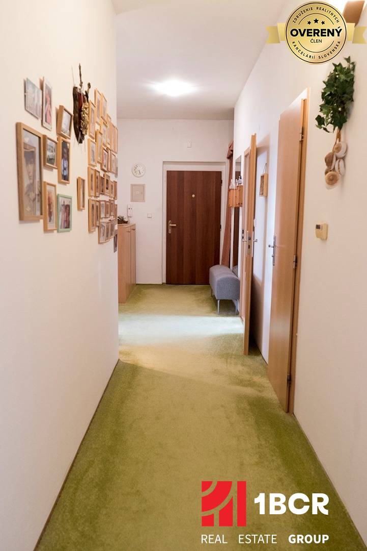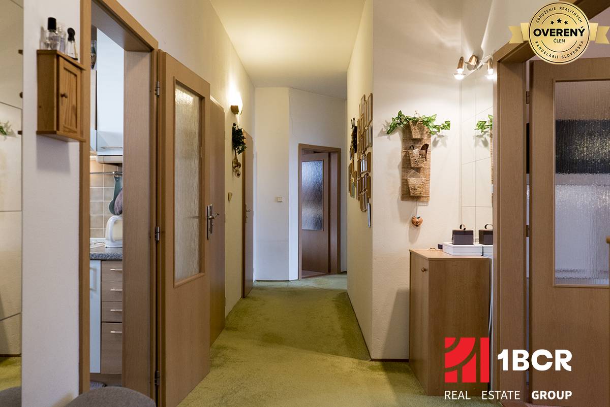 Byt sa nachádza na 3 poschodí z 3, na poschodí sa nachádzajú len 2 byty, je naozaj veľmi priestranný, o rozlohe 108 m2. Dispozične je riešený výborne, pretože po vstupe do bytu sa dostaneme do chodby, ktorá je tzv. spojiteľom do všetkých miestností v byte. Všetky miestnosti /kuchyňa, obývačka, izby/ sú nepriechodné. Byt môžeme rozdeliť na tzv. spoločenskú a oddychovú / spálňovú časť, alebo trakt. Prešiel čiastočnou rekonštrukciou a je naozaj vo výbornej kondícií. Orientácia bytu je na V a Z, čo zabezpečuje výborný prietok vzduchu. Medzi veľké výhody bytu okrem rozlohy patrí aj balkón o veľkosti 3 m2 a pivnica o veľkosti cca 9 m2.