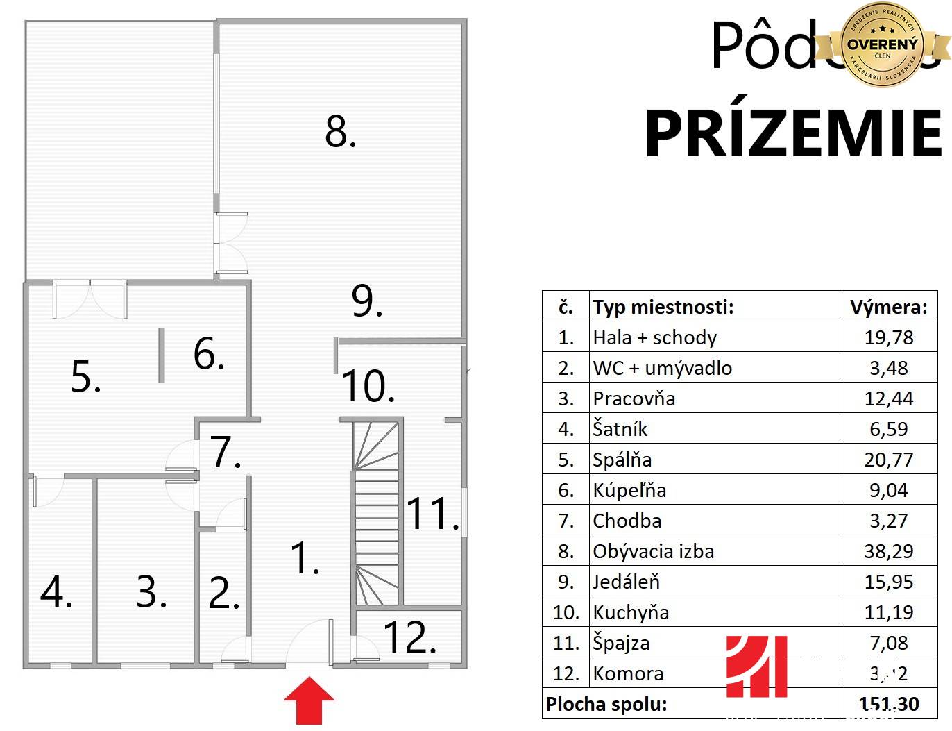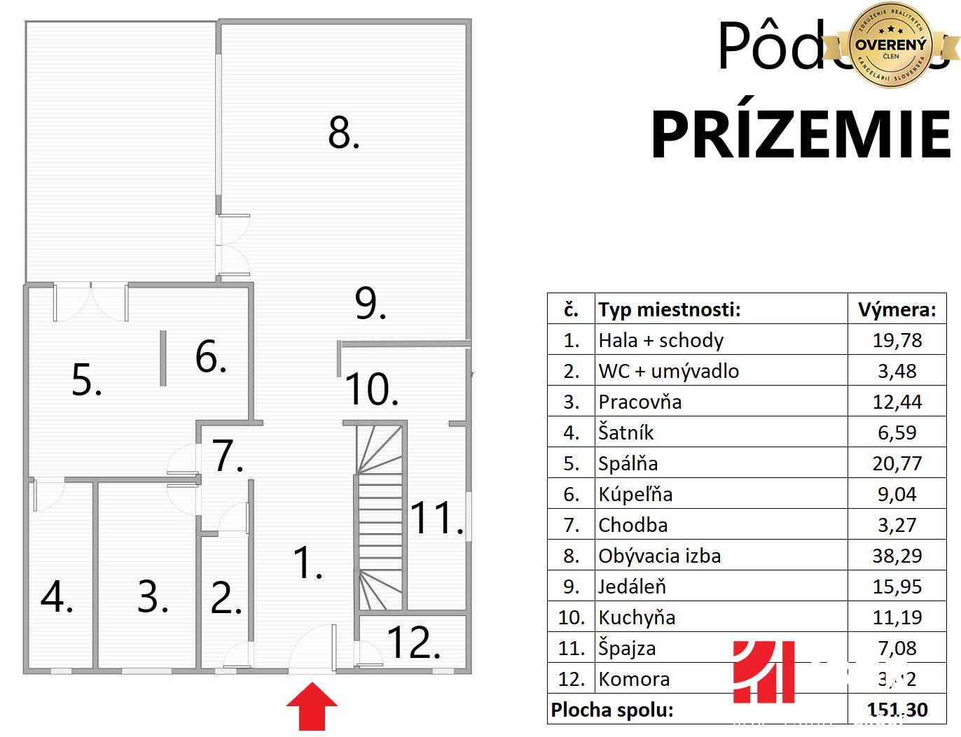 * Zastavaná plocha: 228 m2