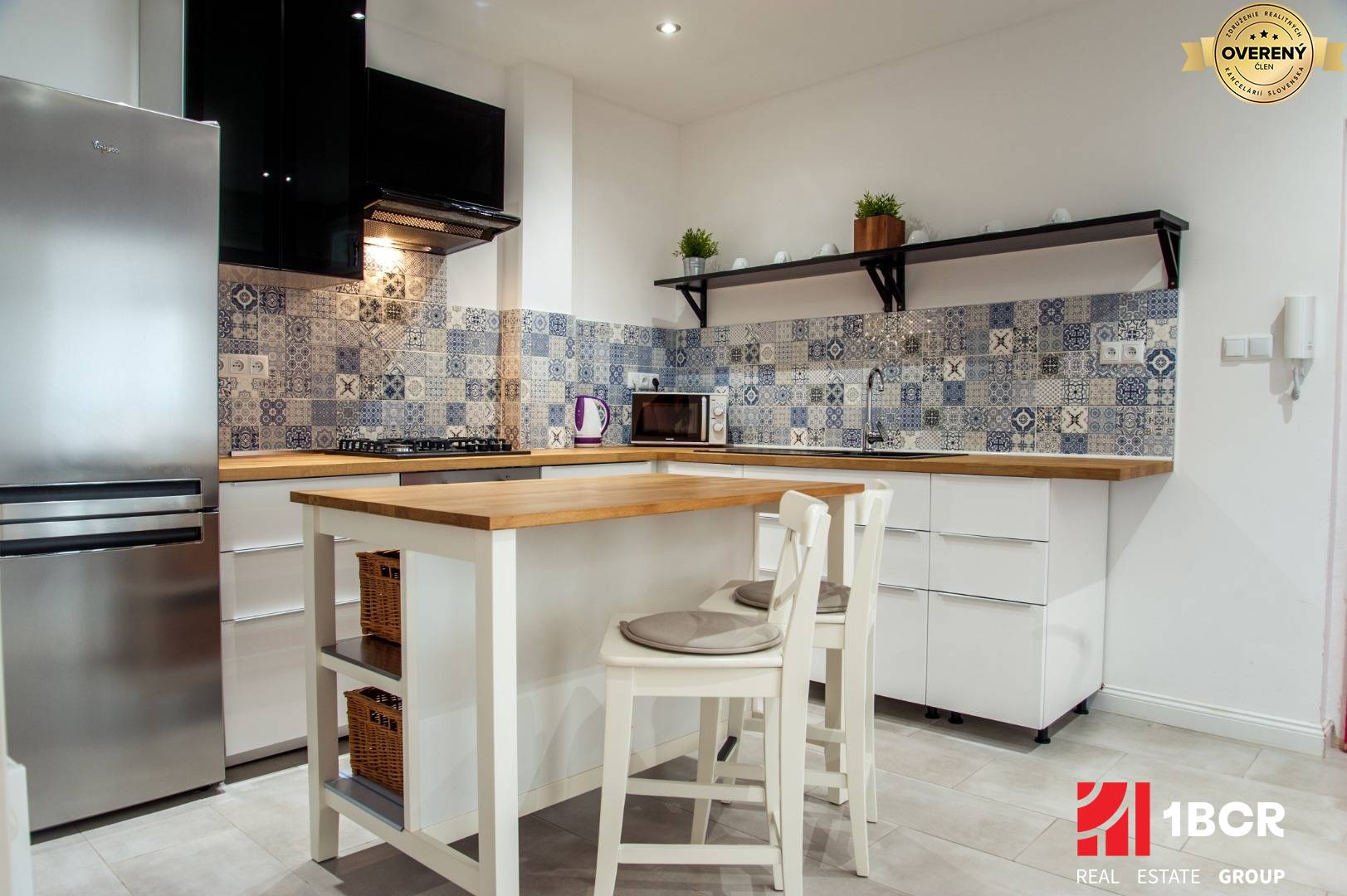 * Moderná kuchyňa obsahuje vstavané značkové spotrebiče, plynový sporák, elektrickú rúru na pečenie, digestor, umývačku riadu, chladničku s mrazničkou a jedálenský ostrovček.