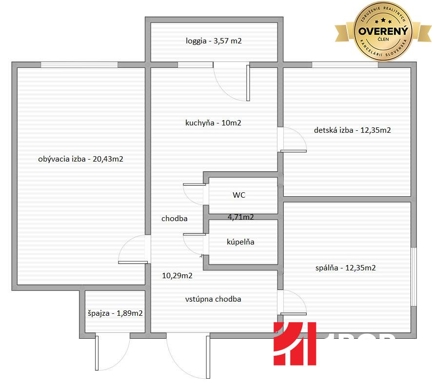 * plocha loggie: 3,57 m²
