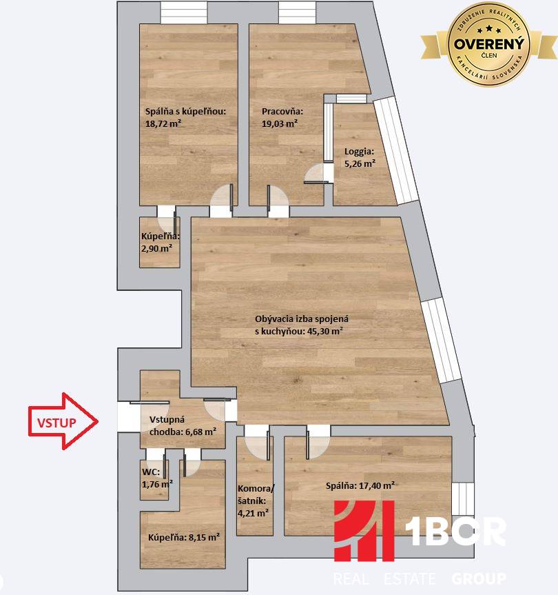 * Pracovňa so vstupom na loggiu: 19,03 m²
