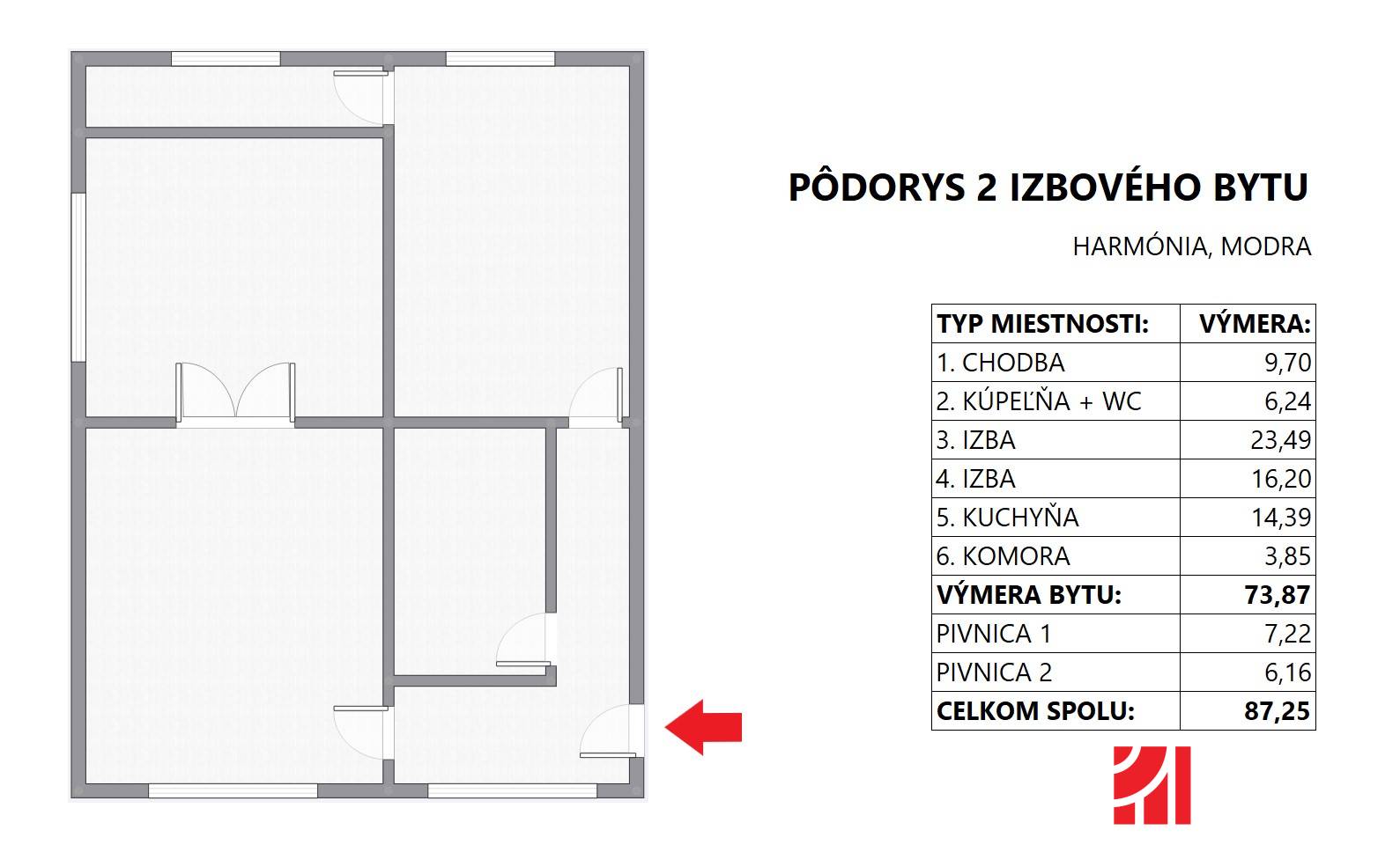 * Celková plocha bytu: 87.25 m2