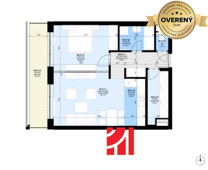 * Plocha bytu: 59,41 m2