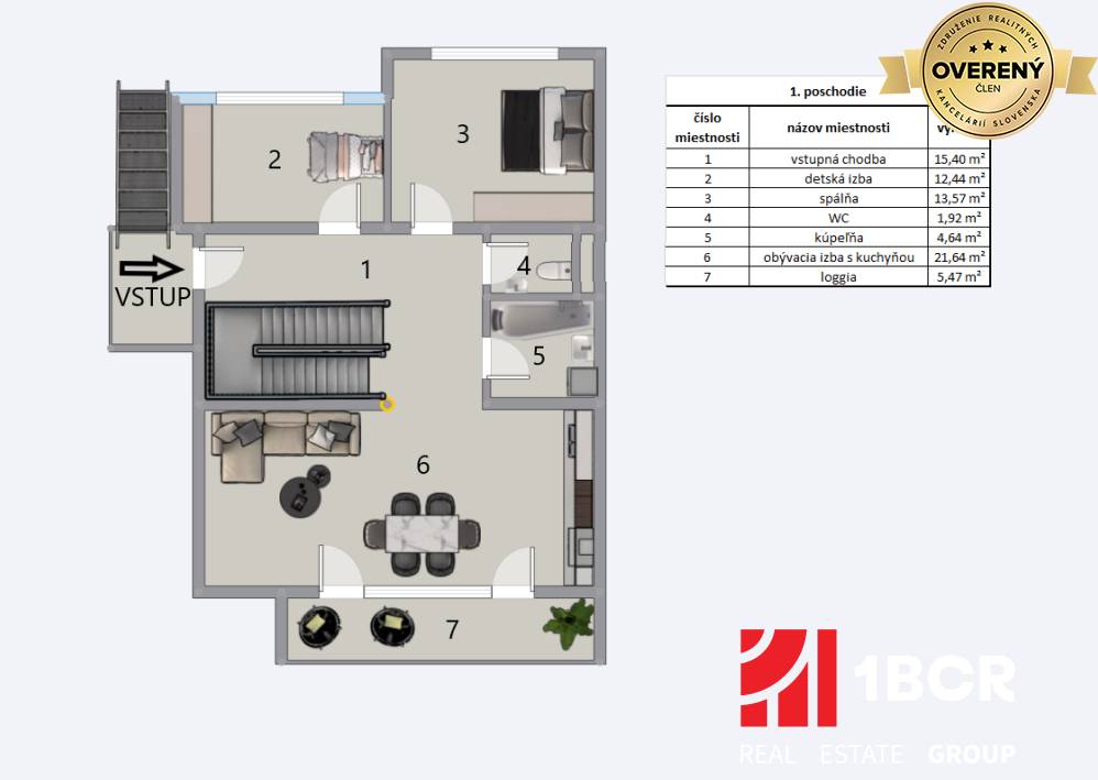 Všetky prezentované údaje zverejnené v tomto inzeráte majú informatívny charakter a žiadnej strane nevzniká nárok na uzatvorenie zmluvy. Spoločnosť 1.BCR s.r.o. nenesie za ich správnosť, úplnosť a presnosť žiadnu zodpovednosť.