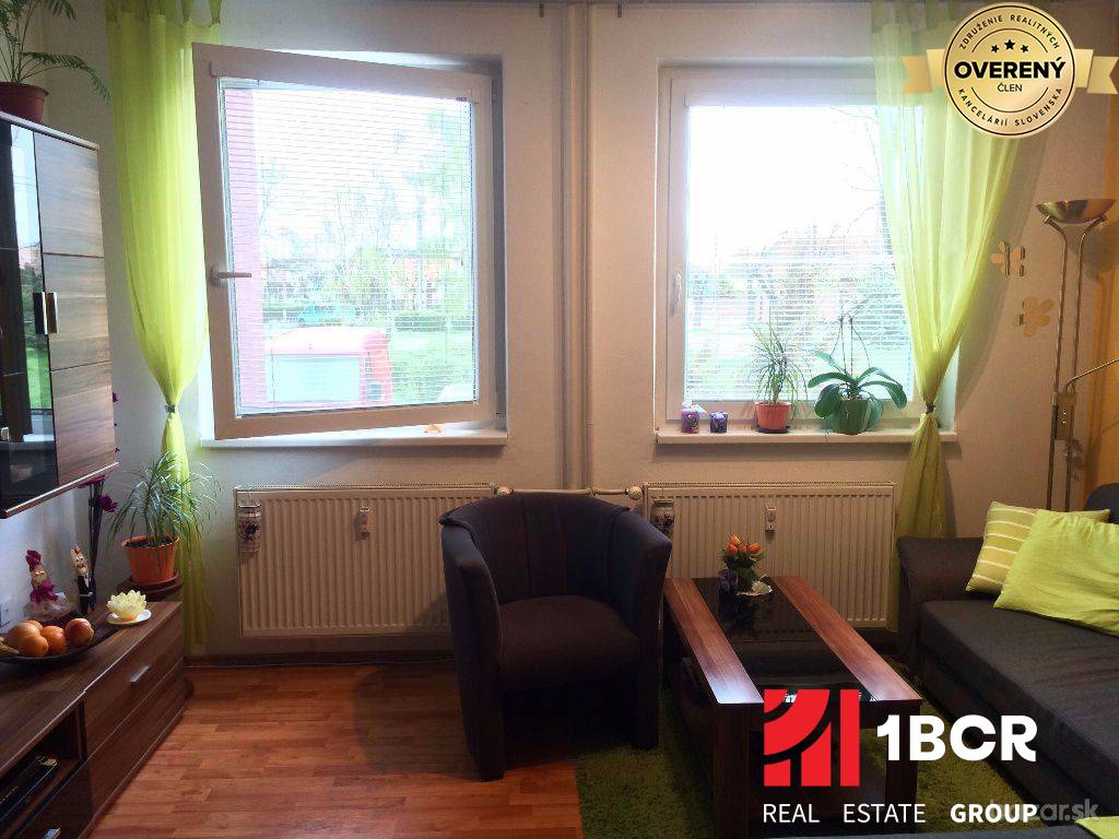 Slnečný byt s výborným dispozičným riešením pozostáva z priestrannej vstupnej chodby, kuchyne spojenej s obývačkou orientovanej na východ, spálne so západnou orientáciou, kúpelne a samostatnej toalety. K bytu prislúcha pivnica. Byt je vkusne zrekonštruovaný, má plastové okná, plávajúce podlahy v izbách, v ostatných priestoroch keramickú dlažbu, vymenené radiátory, novú kuchynskú linku, kúpelňu s vaňou a rebríkovým radiátorom. V bytovom dome boli vymenené vchodové dvere a zrekonštruované vstupné priestory.