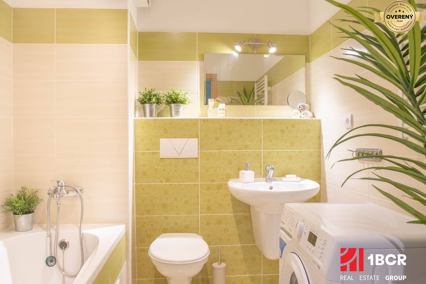 * v kúpeľni, vaňa, toaleta, umývadlo, nová práčka