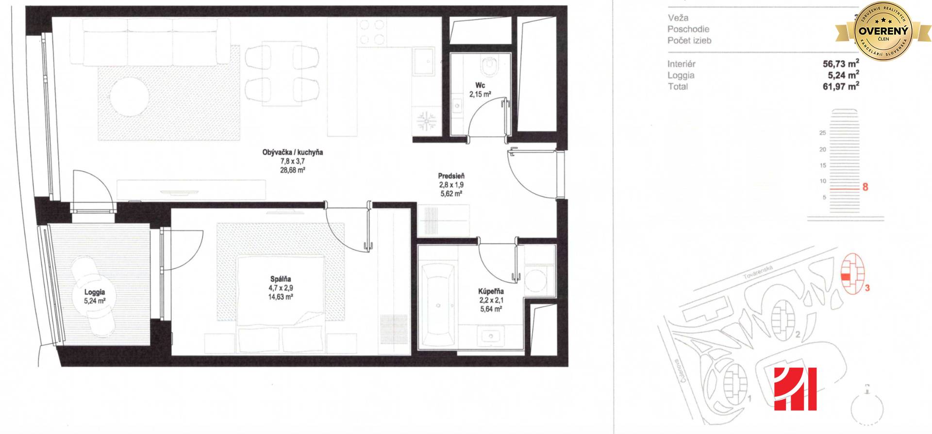 * celková plocha: 61,97 m²