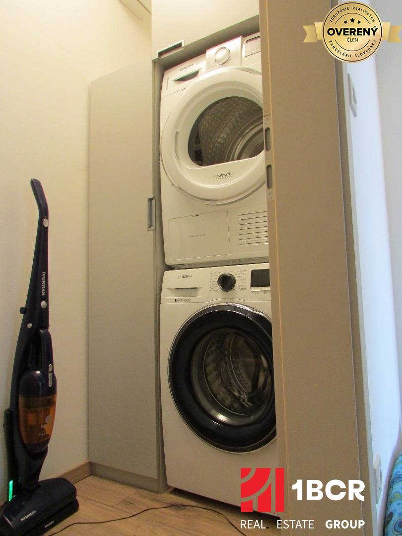 Technická miestnosť je vybavená kvalitnými spotrebičmi snačky SAMSUNG - práčka a sušička, ručný vysávač značky Hyundai a odkladací priestor.