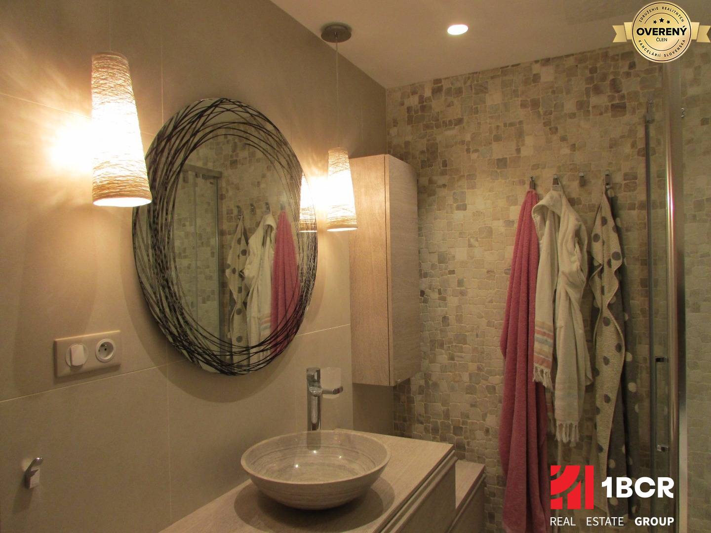 Kúpeľňa je kvalitne zariadená a poskytuje komfort v podobe sprchového kútu a vani, veľkého umývadla pod ktorým sa nachádza úložný priestor na hygienické potreby. Samostatný záchod s dostatkom priestoru a s vlastným umývadlom a odsávaním.