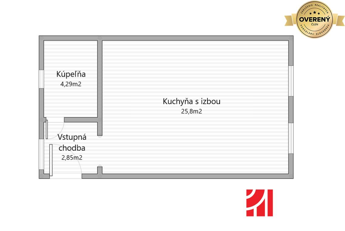 * Kuchyňa s izbou: 25,8 m²