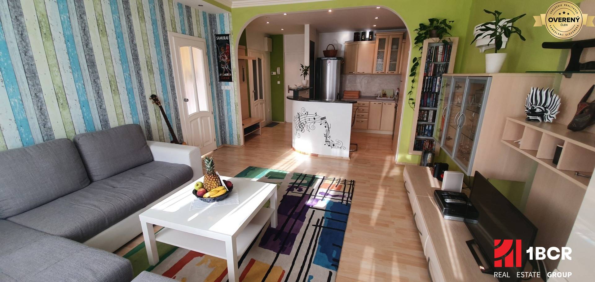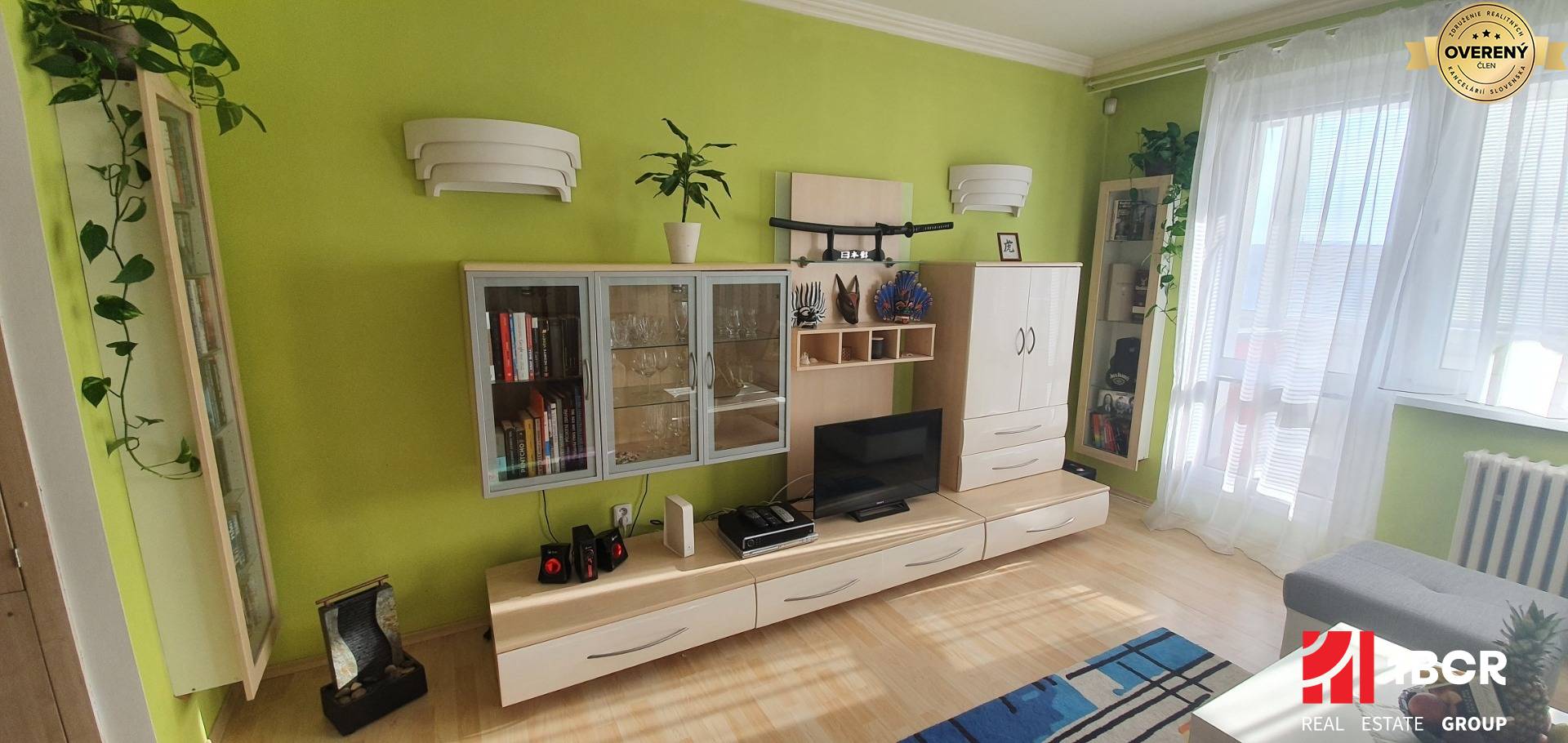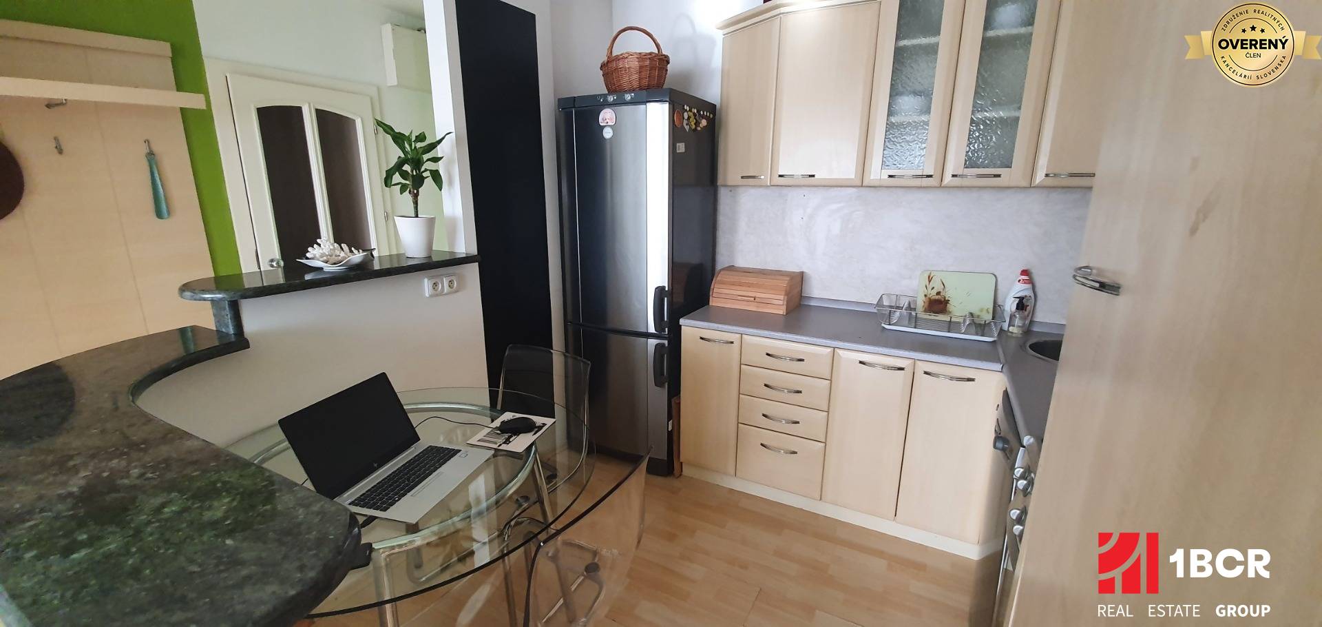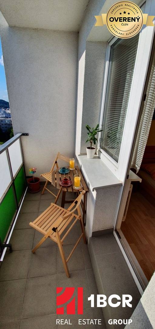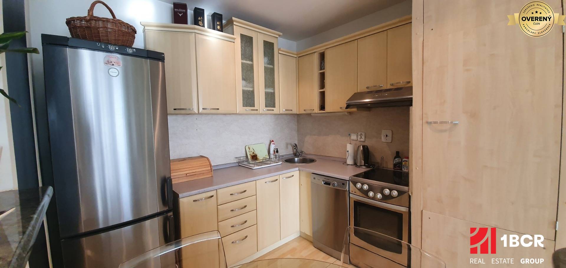 * stav bytu: rekonštrukcia (plastové okná so žaluziami, plávajúce podlahy, interiérové a bezpečnostné vchodové dvere, rohová kuchynská linka so zabudovanou sklokeramickou