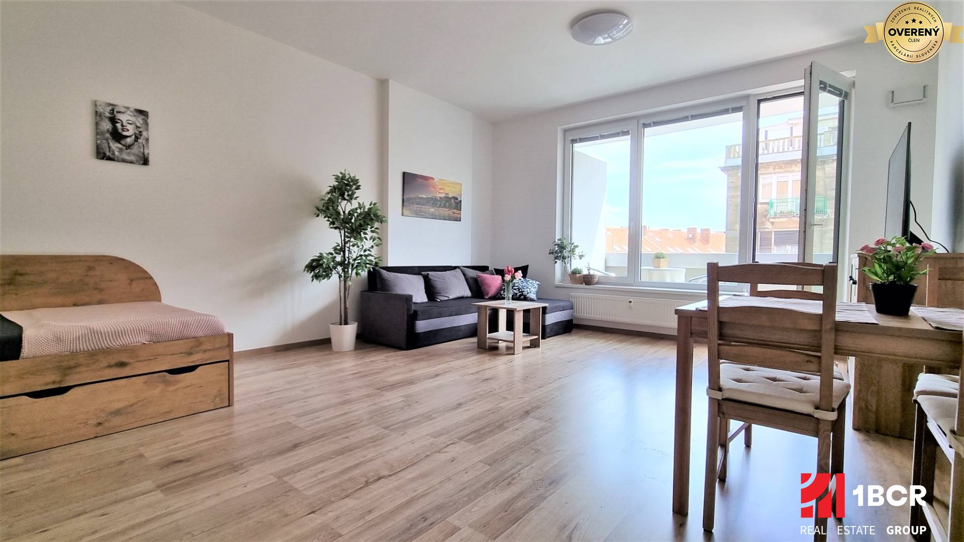 1.BCR ponúka na prenájom novostavbu veľkého 1 izb. bytu v lukratívnom projekte Premiere v Bratislavskej m. č. Staré mesto – Šancová ulica. Byt sa nachádza na 5.NP v bytovom dome Premiere, ktorý splní tie najnáročnejšie požiadavky moderného bývania v centre mesta. Výmera bytu je 40,6 m² a navyše je priestranná loggia 5,57 m². K bytu Vás privezú 2 výťahy a o bezpečnosť sa stará 24 hodinová recepcia. Byt je okamžite voľný a nie je potrebné byť zariadiť. Súčasťou bytu je aj praktická komora s veľkým úložným priestorom. V cene nájmu je aj internet, TV. Nový nájomník sa určite poteší aj možnosťou využívania súkromného parku na 6.NP, ktorý tvorí zelenú oázu mestského bulváru.