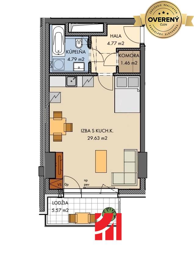* výmera bytu: 40,6 m² (bez loggii)