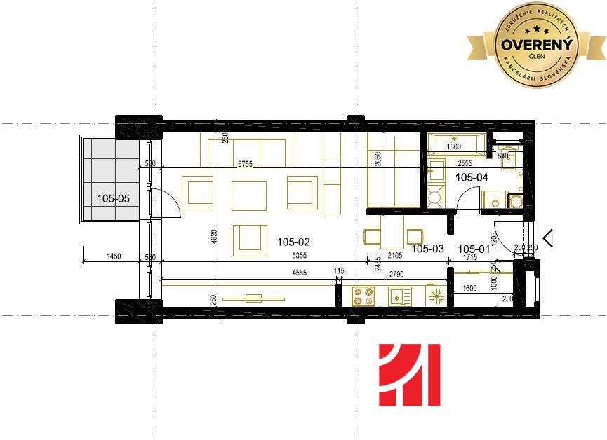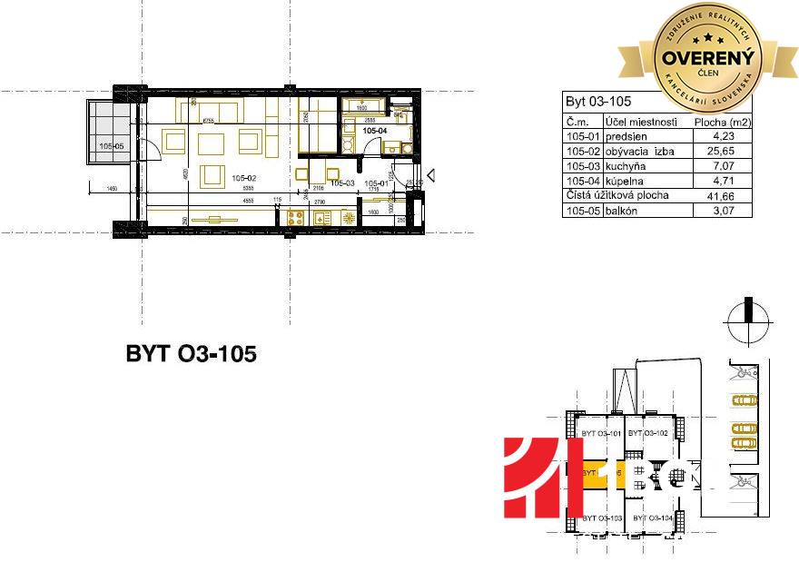 5.poschodie: 03-505: úžitková plocha bytu: 41,66 m² + balkón 3,04 m² : CENA: 97 484 €