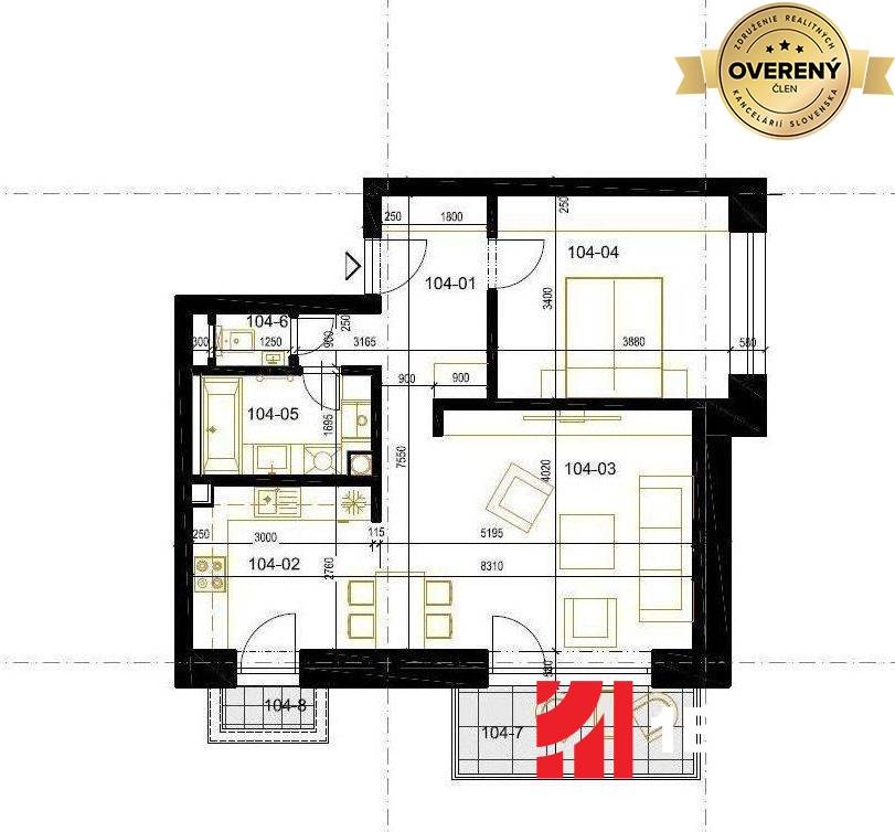 1.poschodie: 03-104: úžitková plocha bytu: 55,67 m² + plocha balkónov: 8,15 m² : CENA: 130 268 €
